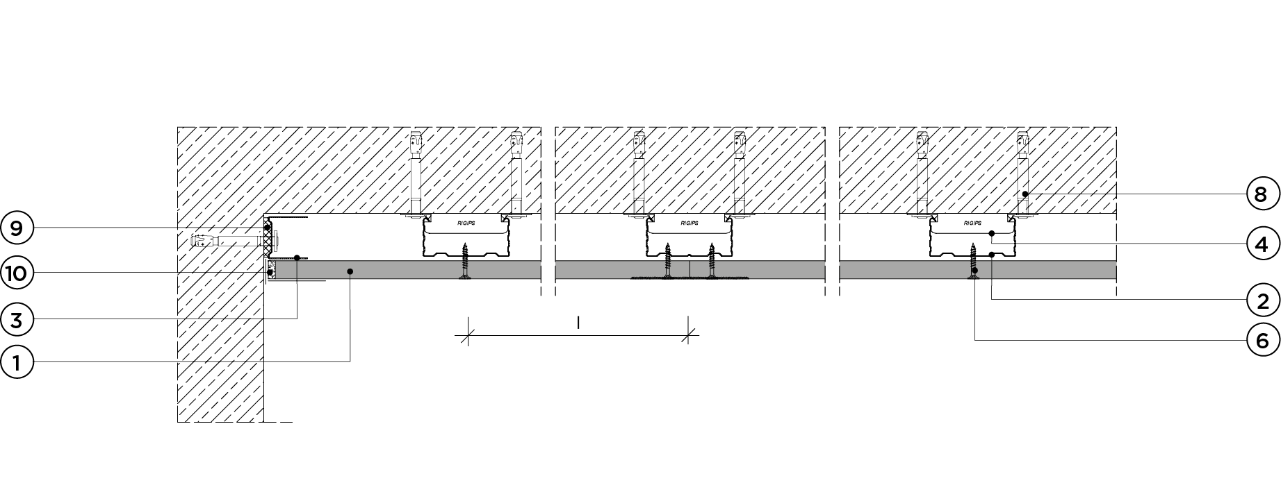 płyty gipsowo-kartonoweRIGIPS PRO mocowane na profilach RIGIPS C RIGISTIL i uchwytach bezpośrednich