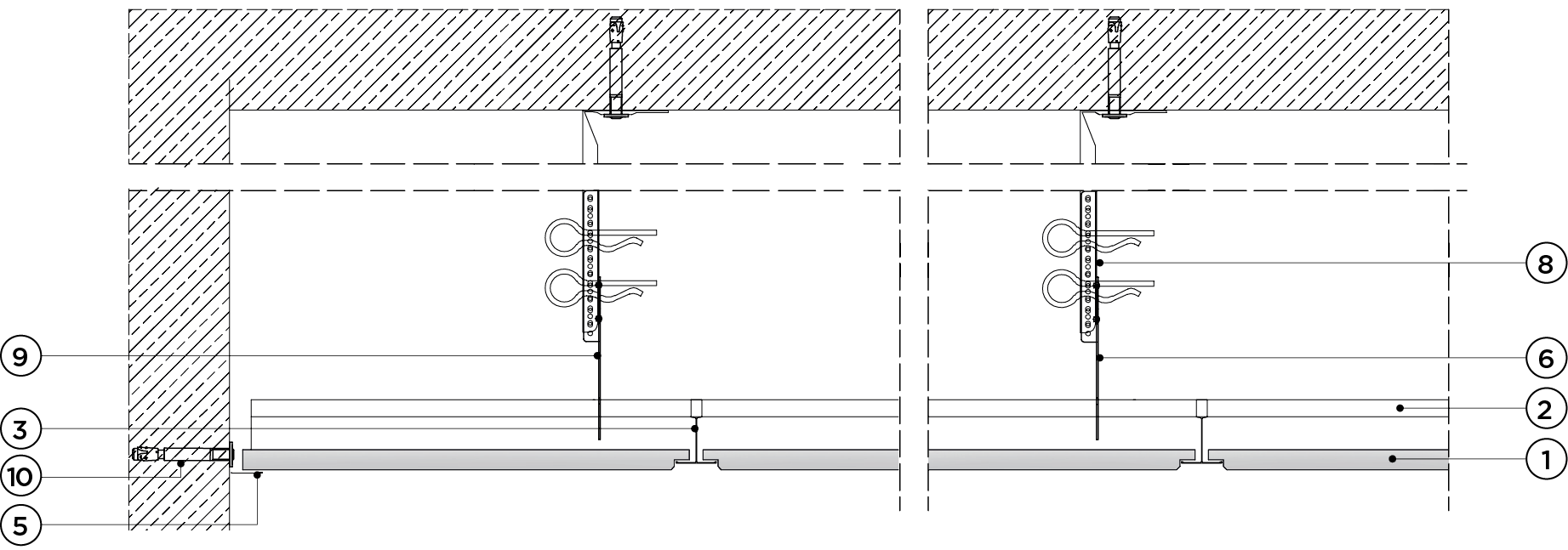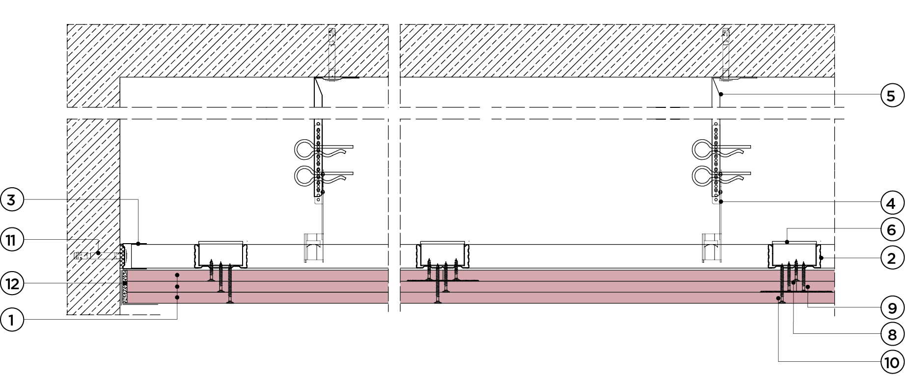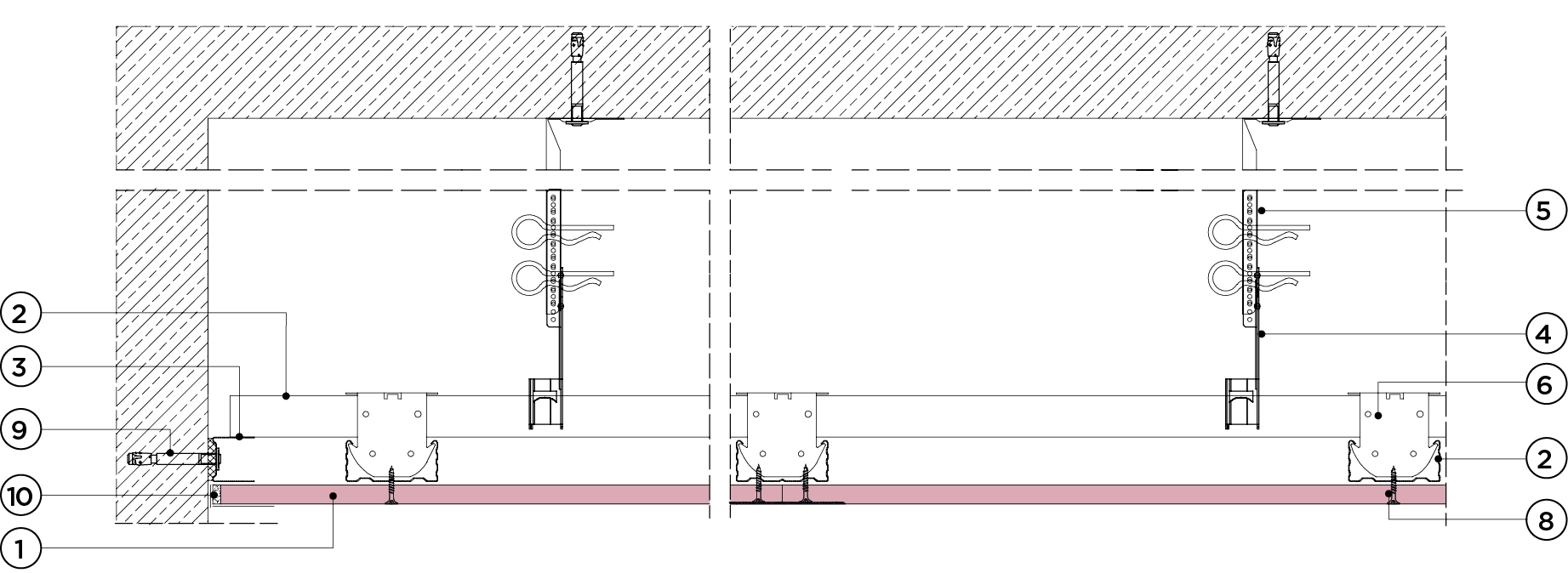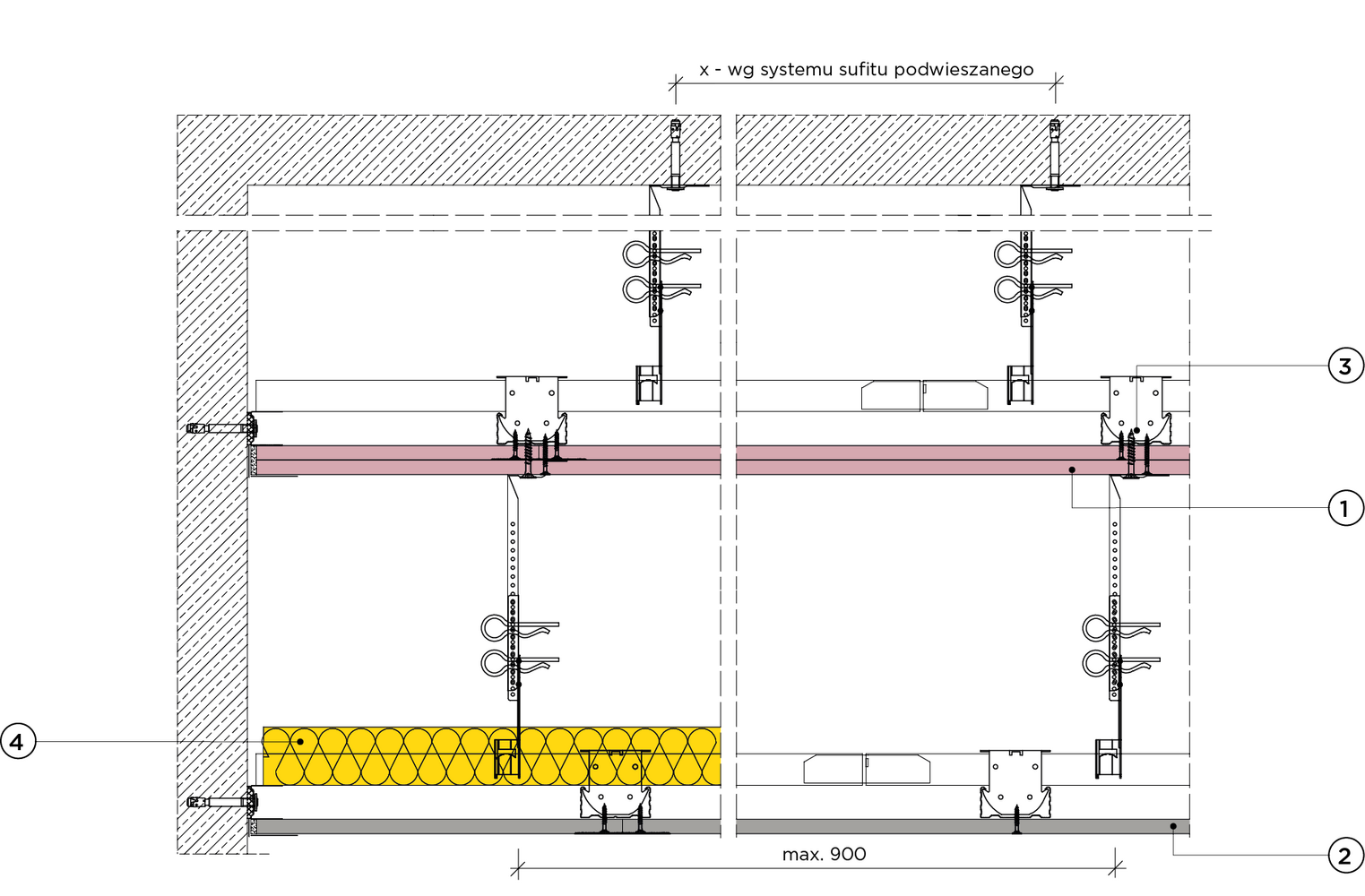 płyty gipsowo-kartonowe RIGIPS PRO mocowane na konstrukcji krzyżowej dwupoziomowej z profili CD 60 (sufit pod sufitem)