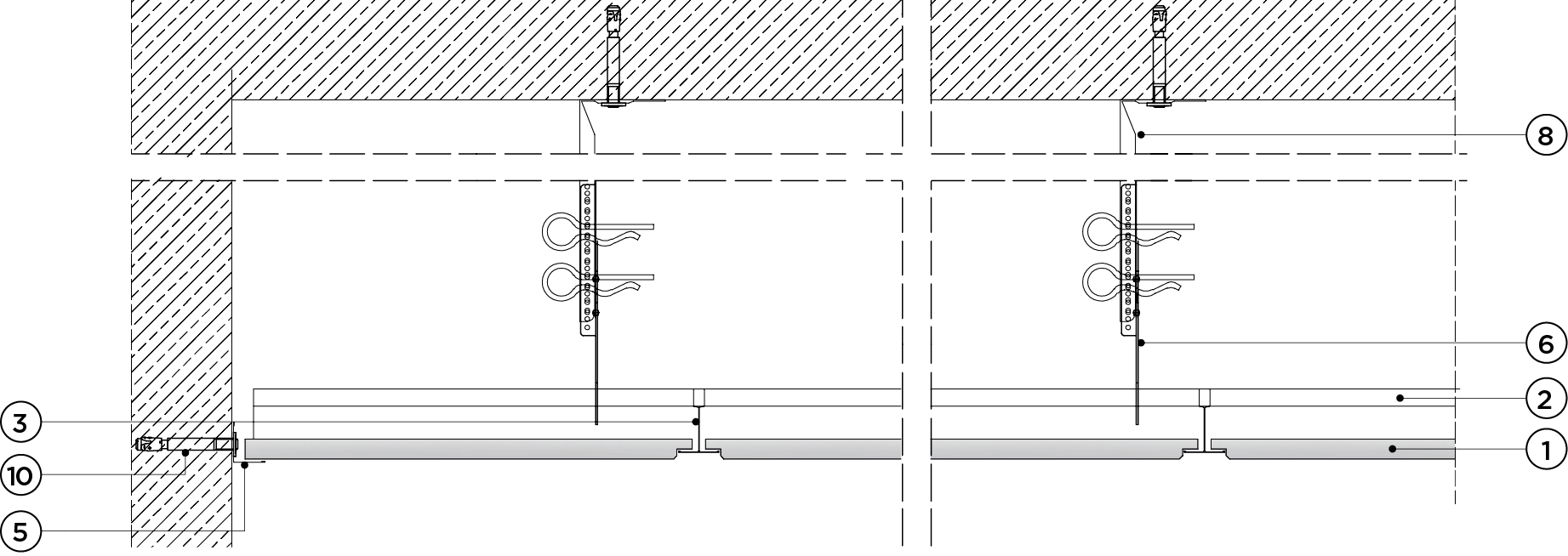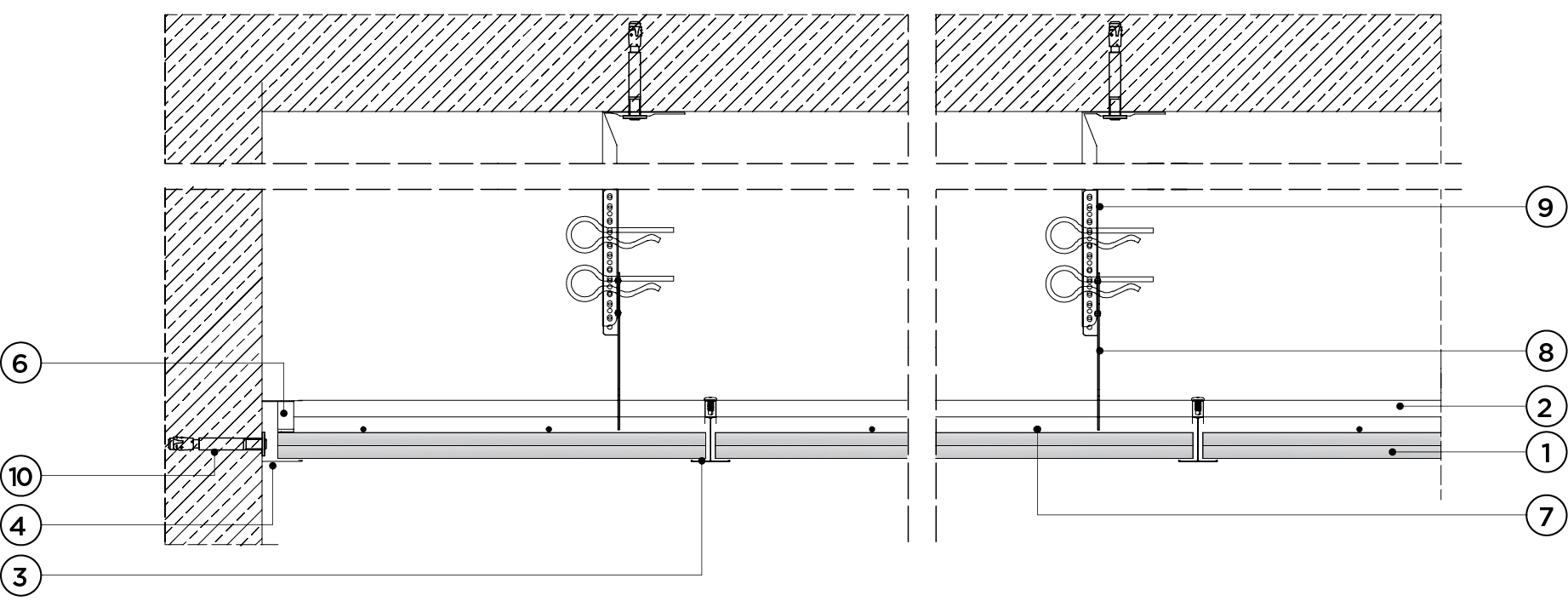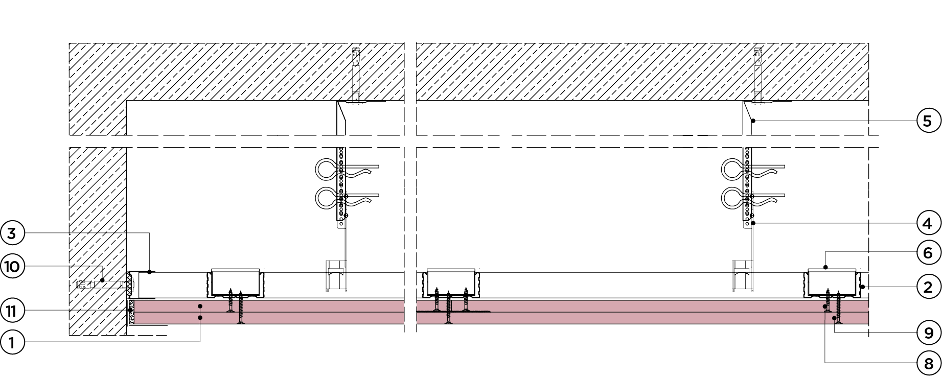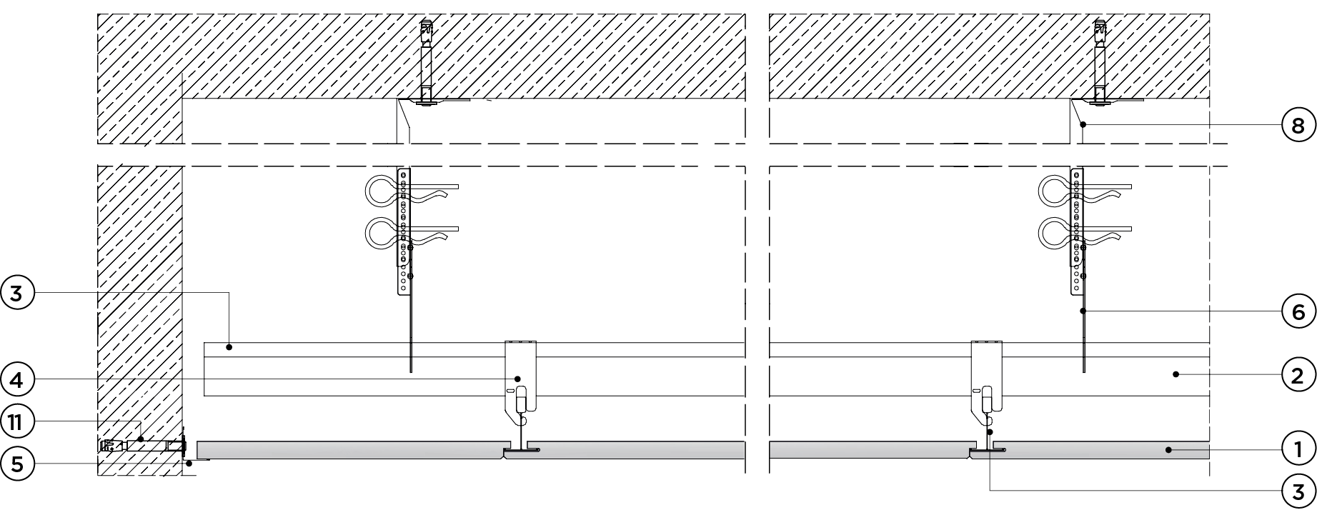 płyty gipsowo-kartonowe RIGIPS PRO mocowane na konstrukcji krzyżowej dwupoziomowej z profili CD 60 (sufit pod sufitem)