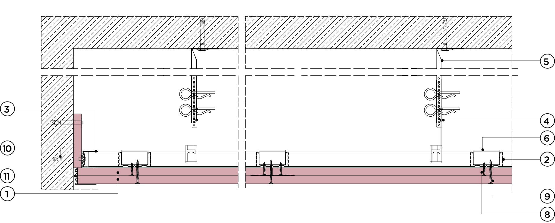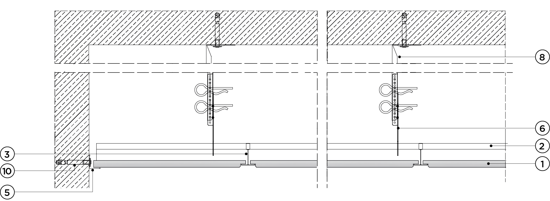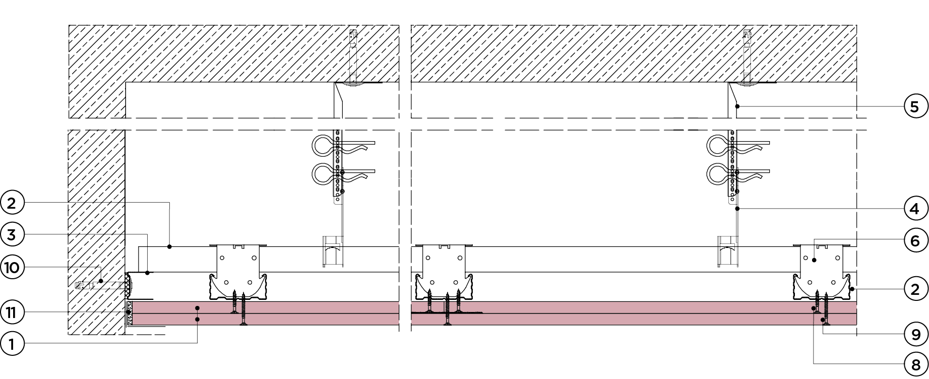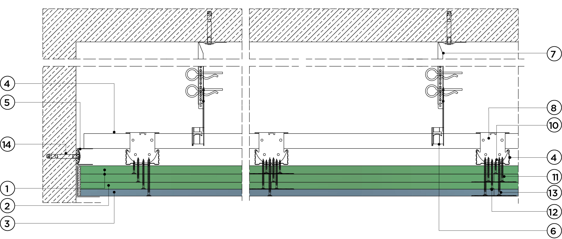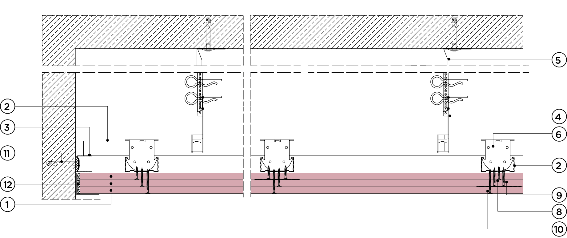 płyty gipsowo-kartonowe RIGIPS PRO mocowane na konstrukcji krzyżowej dwupoziomowej z profili CD 60 (sufit pod sufitem)