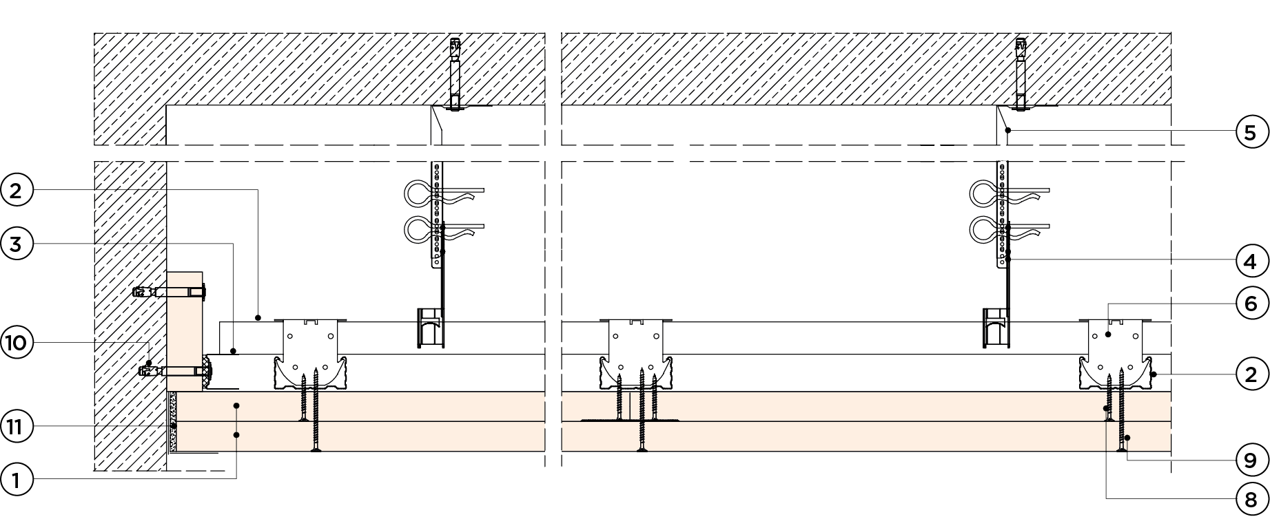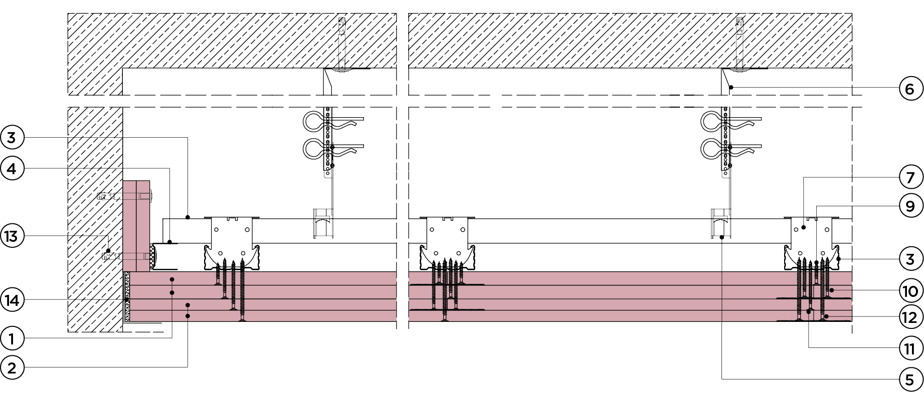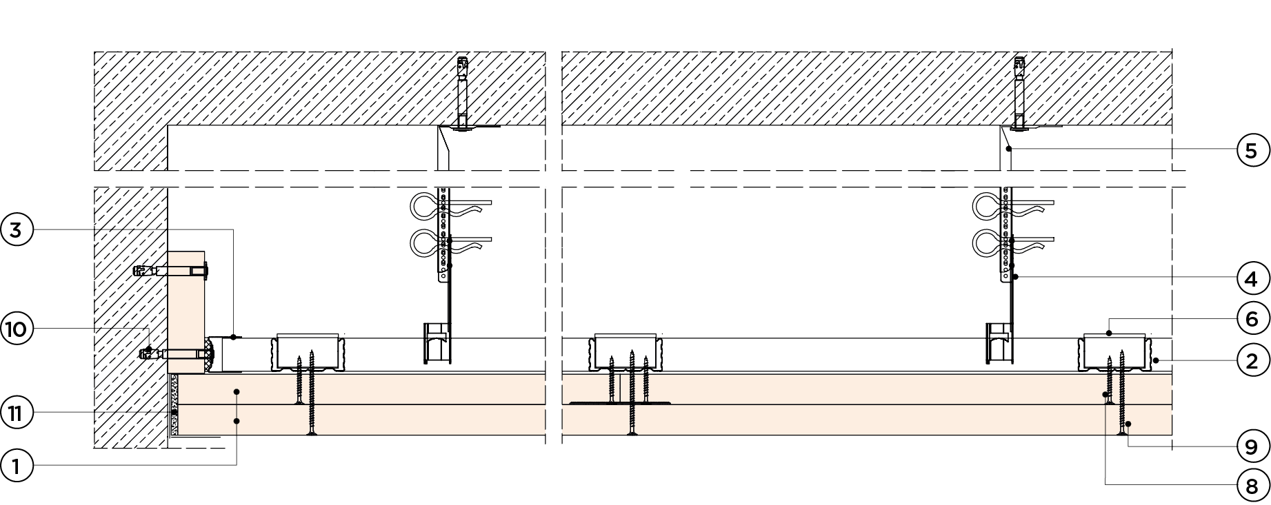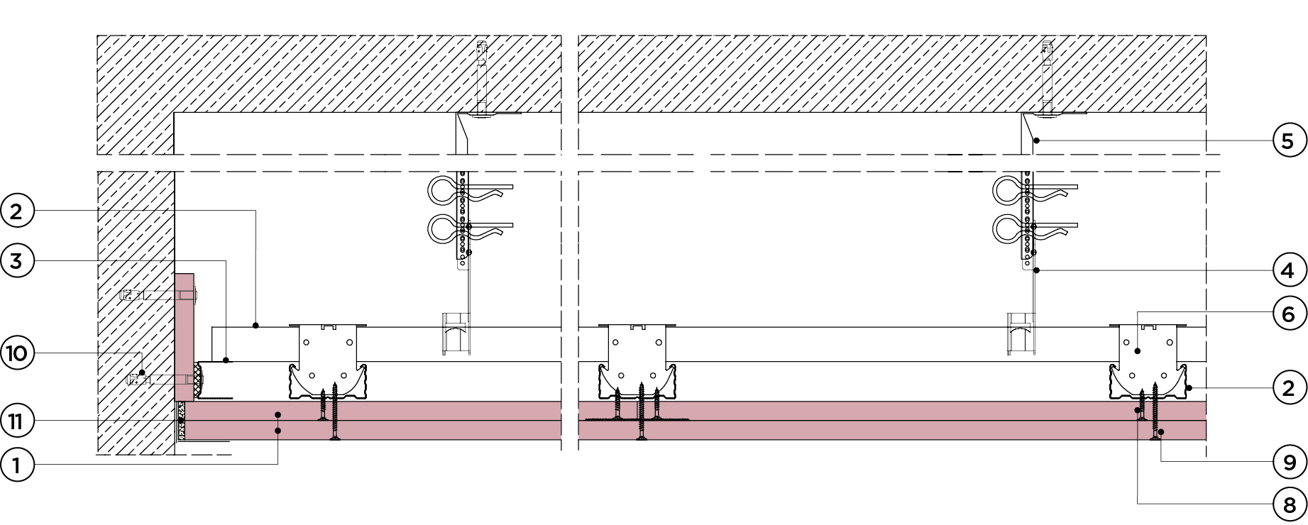 płyty gipsowo-kartonowe RIGIPS PRO mocowane na konstrukcji krzyżowej dwupoziomowej z profili CD 60 (sufit pod sufitem)