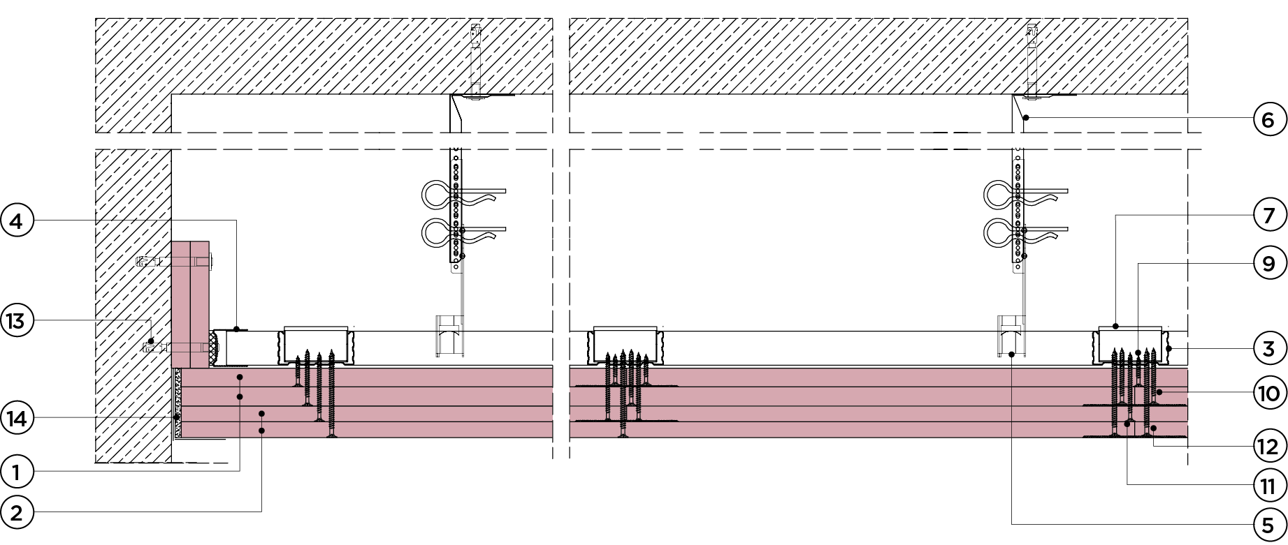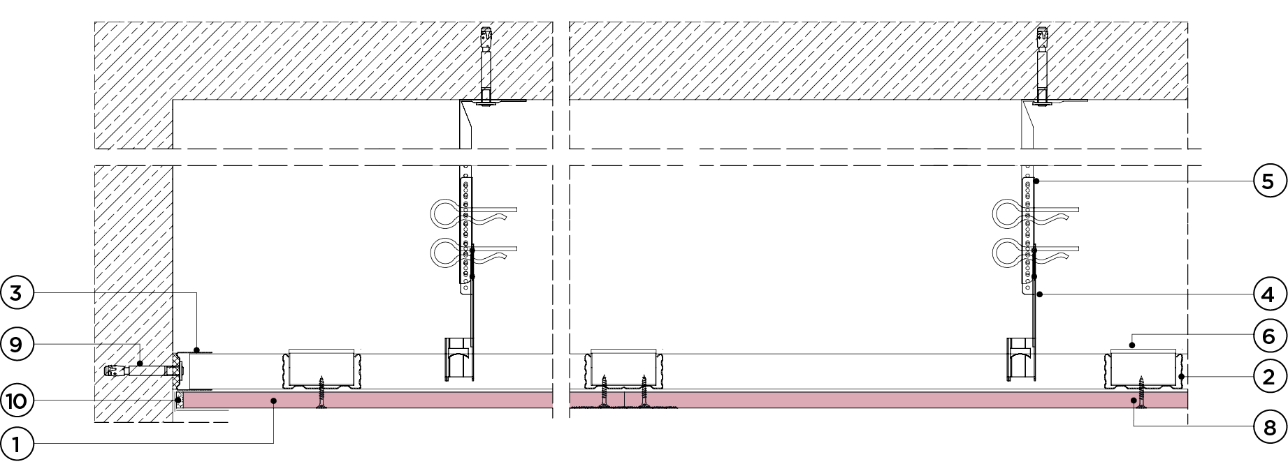 płyty gipsowo-kartonowe RIGIPS PRO mocowane na konstrukcji krzyżowej dwupoziomowej z profili CD 60 i UA 50 (klasa odporności ogniowej z dwóch stron)